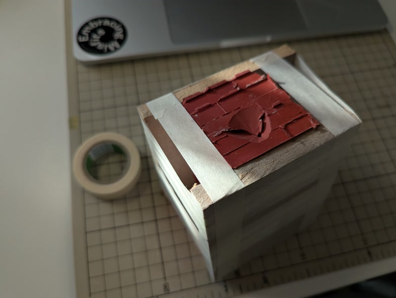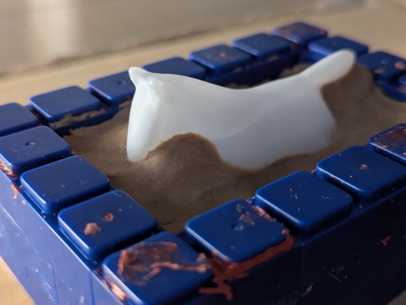 - Build a mold block around the prototype and attach clay to the bottom (for the lower mold)